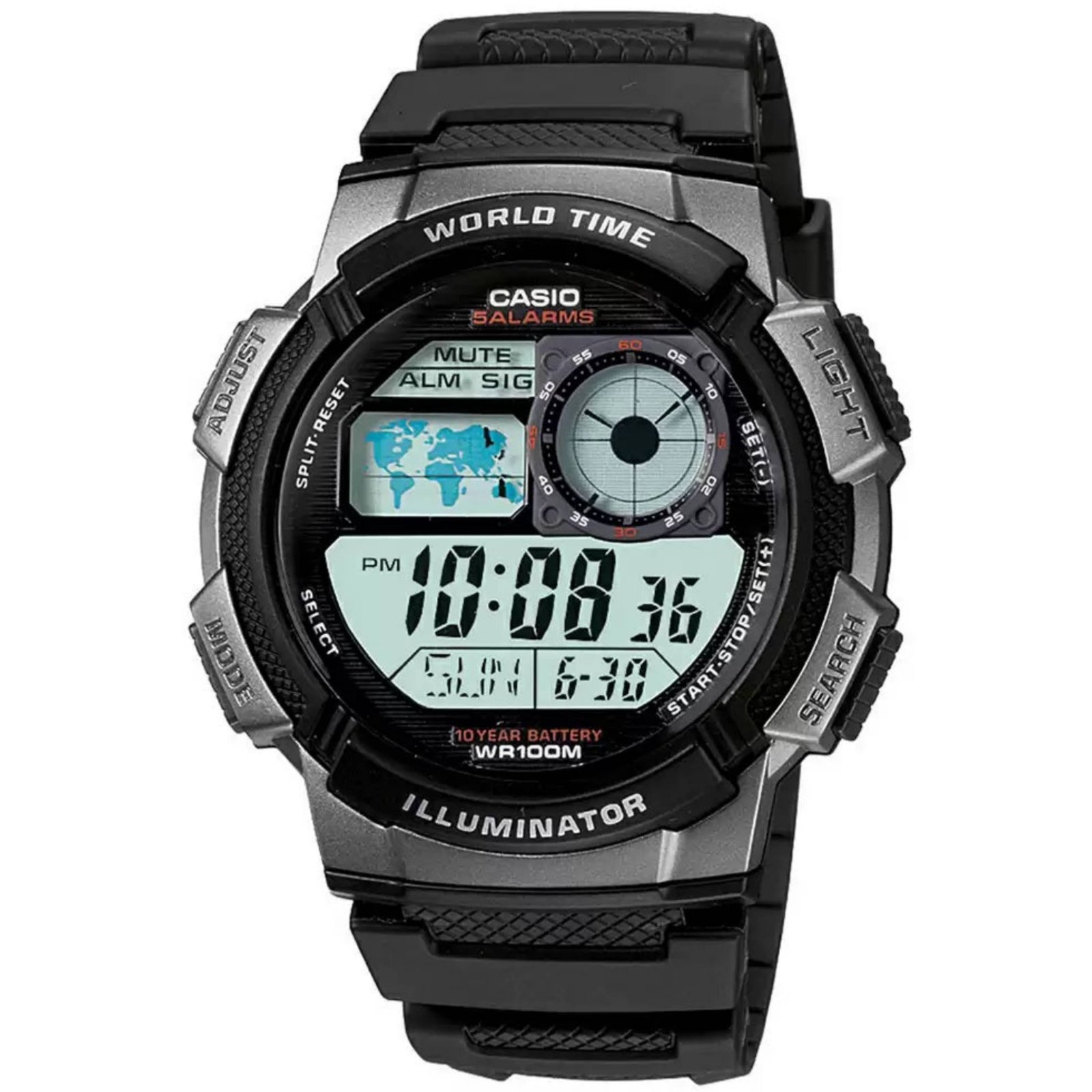 Štoperica, alarm, kalendar, osvjetljenje, baterija 10 godina, vodootporan.