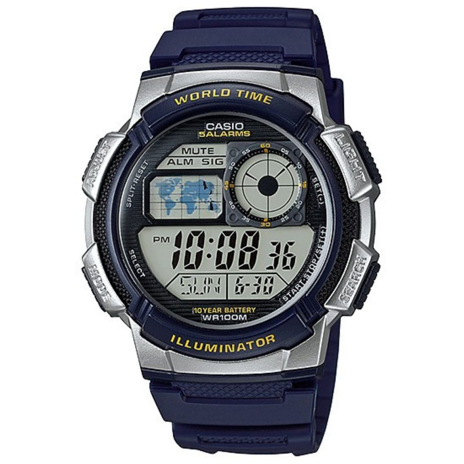 Štoperica, alarm, kalendar, osvjetljenje, baterija 10 godina, vodootporan.
